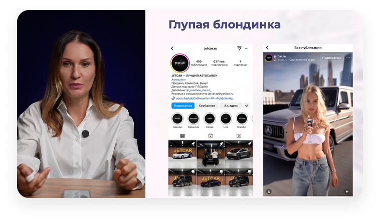 Почему автосалон JetCar использовал «глупую блондинку» и видео о том, как «трясется грудь», чтобы набрать 600+ тысяч подписчиков, и какой неочевидный маркетинговый принцип за этим стоит